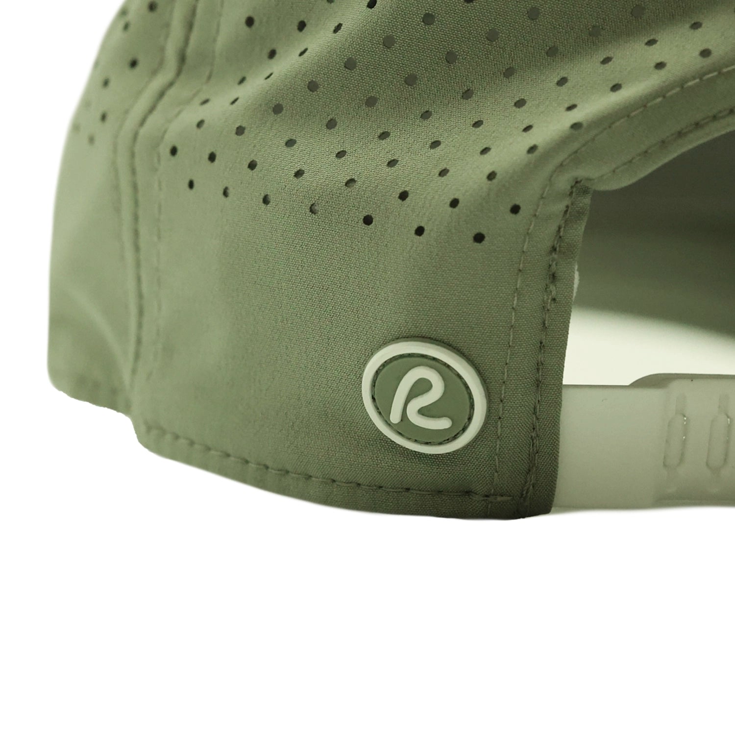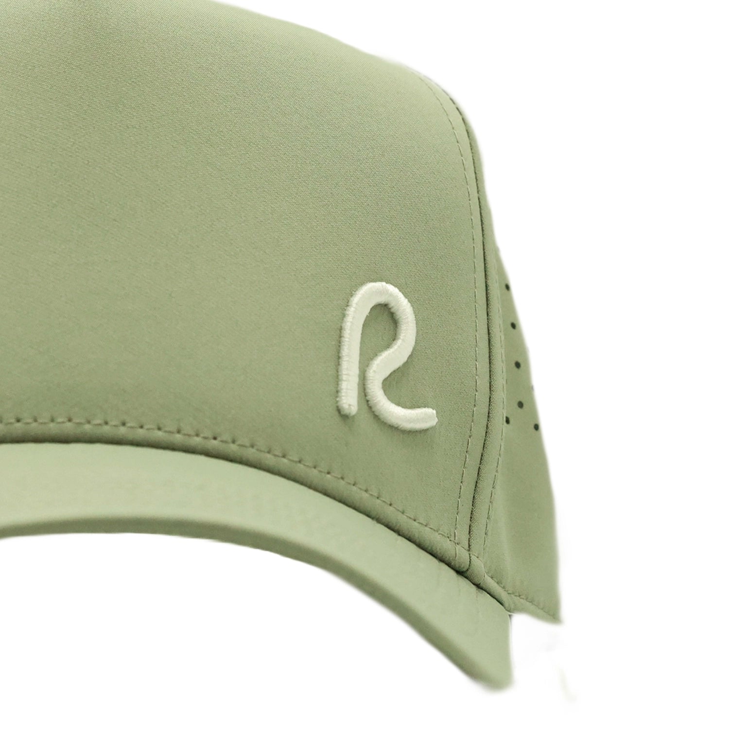 - Green trucker cap with mini white R logo